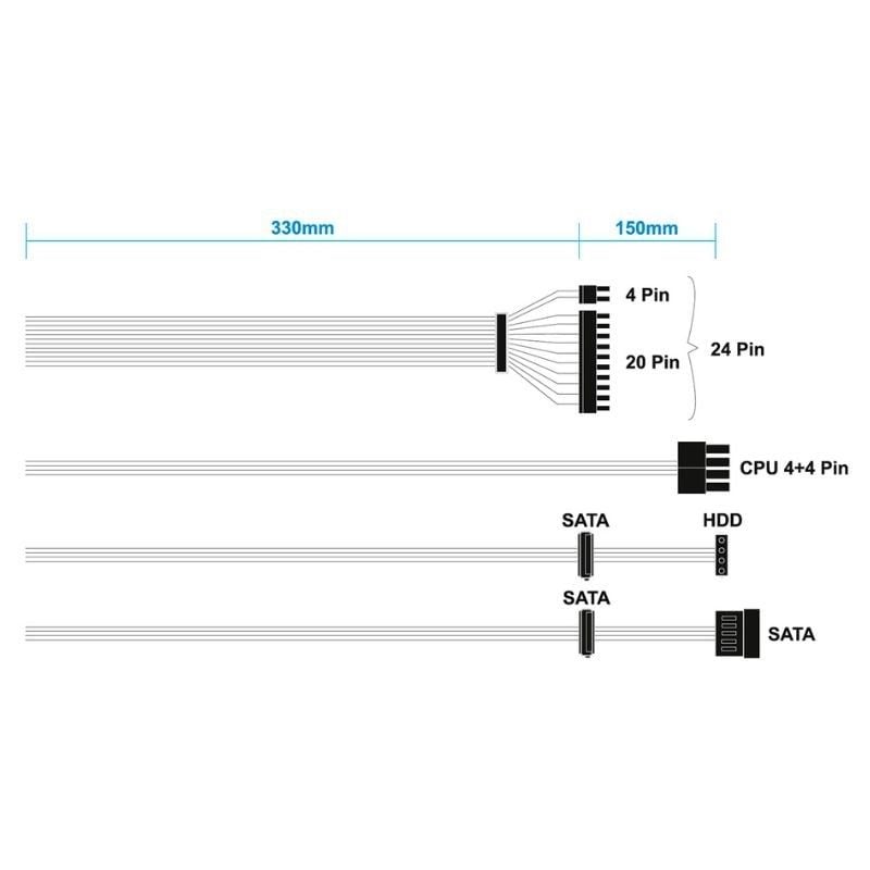 - 1 conector SATA + 1 conector Molex 330+150mm