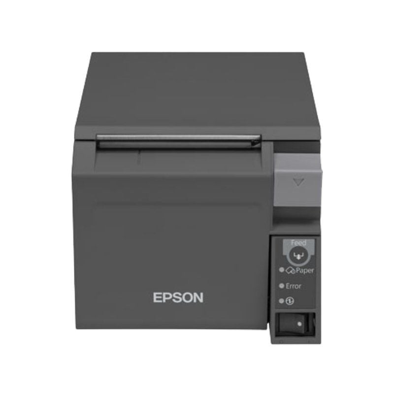 La TM-T70II es una impresora térmica fiable para recibos que puede ‘manejarse desde la parte delantera ya que dispone de carga de papel ‘frontal. Con un tamaño reducido y controles de botón accesibles, se ‘puede colocar cómodamente debajo del mostrador, mientras que su rápida ‘velocidad de impresión de 250 mm por segundo y su impresión sin márgenes’ te permiten atender rápidamente a los clientes, ya que no hay que ‘cambiar los rollos de papel con tanta frecuencia.