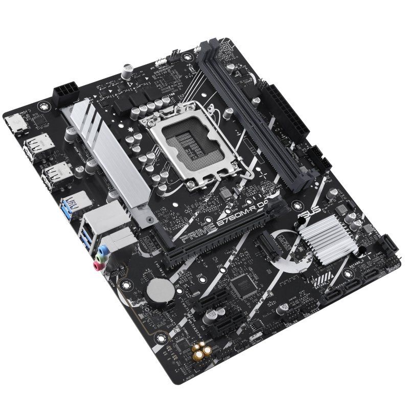 ASUS PRIME B760M-R D4 una placa base Intel® B760 LGA 1700 micro-ATX con PCIe 4.0, dos ranuras PCIe 4.0 M.2, DDR4, Realtek 2.5Gb Ethernet, HDMI™, SATA 6 Gbps, puertos USB frontales 5Gbps, Aura Sync