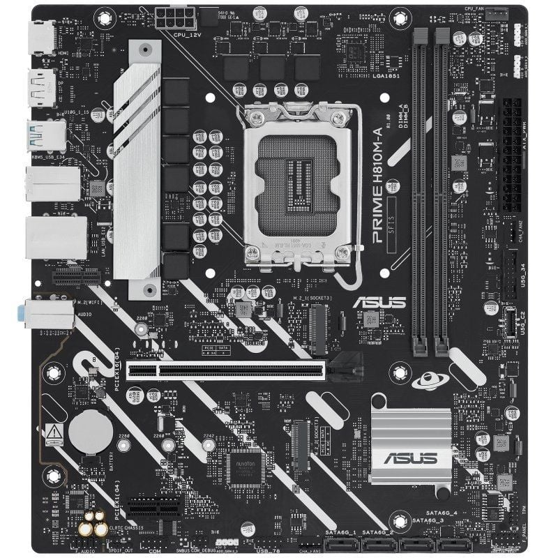PRIME H810M-A-CSM ofrece un total de dos ranuras M.2, incluida una que admite velocidades de transferencia de datos de hasta 64 Gbps a través de PCIe 4.0 y otra que admite 32 Gbps a través de PCIe 4.0. Esto permite tiempos de arranque y carga de aplicaciones más rápidos con unidades de SO o de aplicaciones.